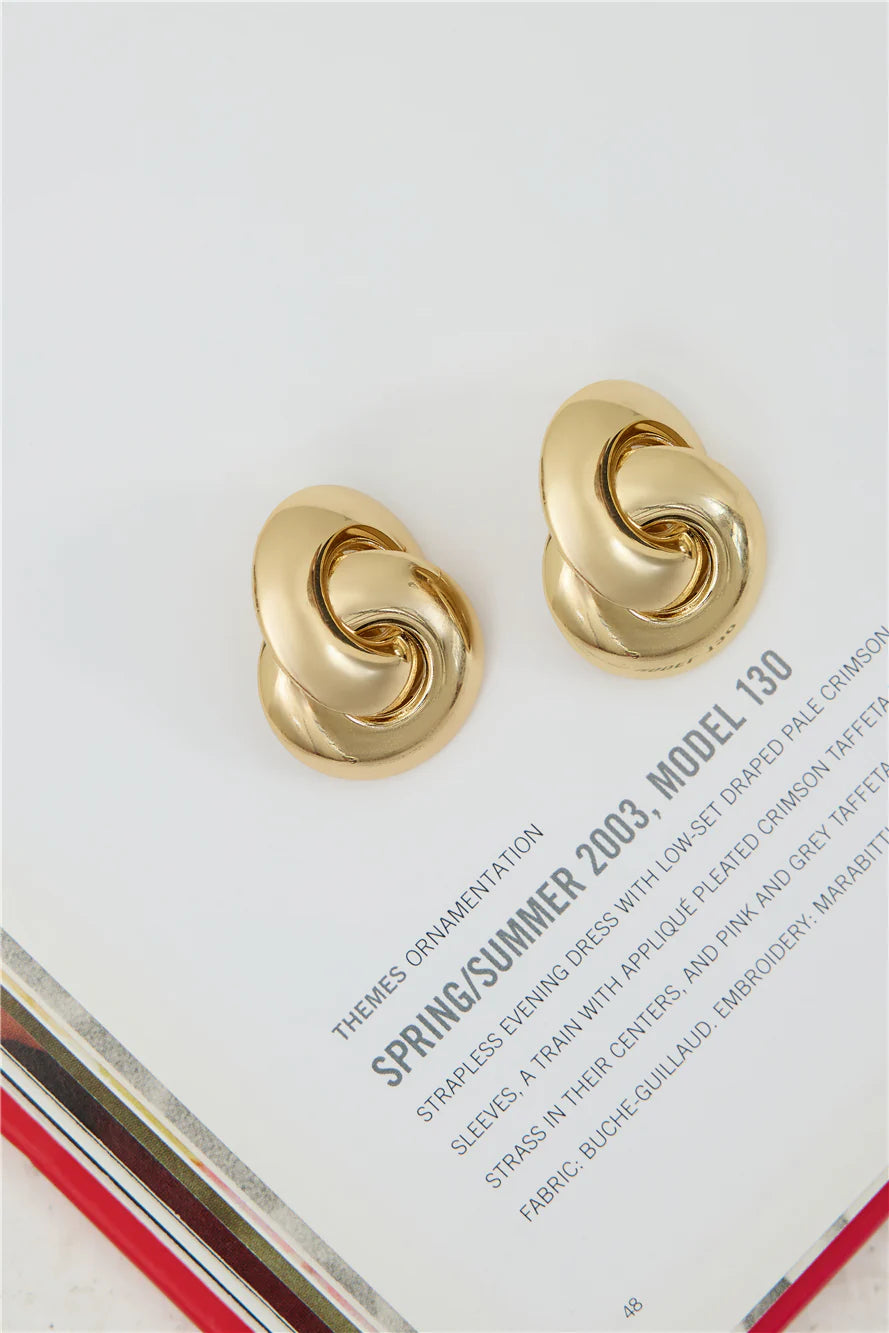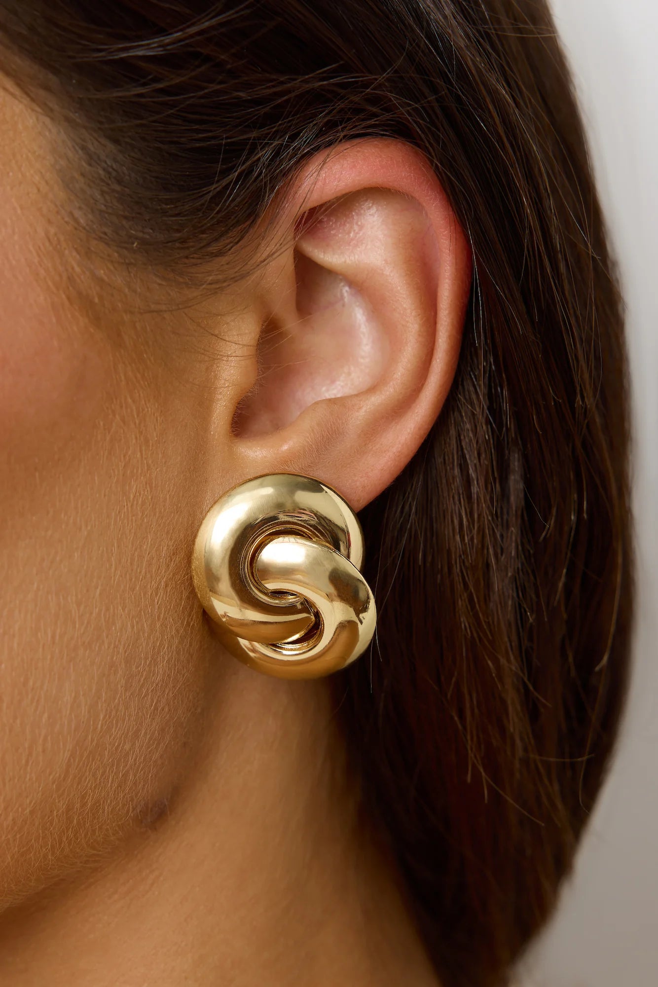 The Aiko Earrings are stylish and totally eye-catching! With their statement-making intertwined design, these earrings in gleaming gold create a stunning, sculptural effect that’s perfect for turning heads. A must-have for those who love a chic, modern look with a touch of sophistication.