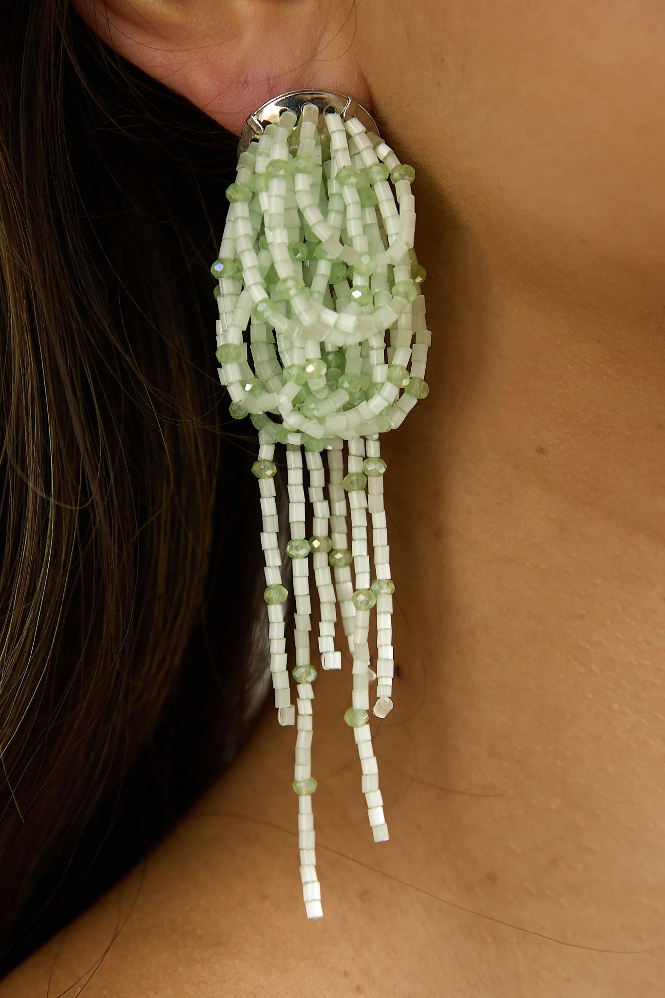 Complete your look with our chic Andora earrings. They feature bead embellishment and are perfect for a date night or a brunch with your girlies. Team them with a sun dress for a super cute look.