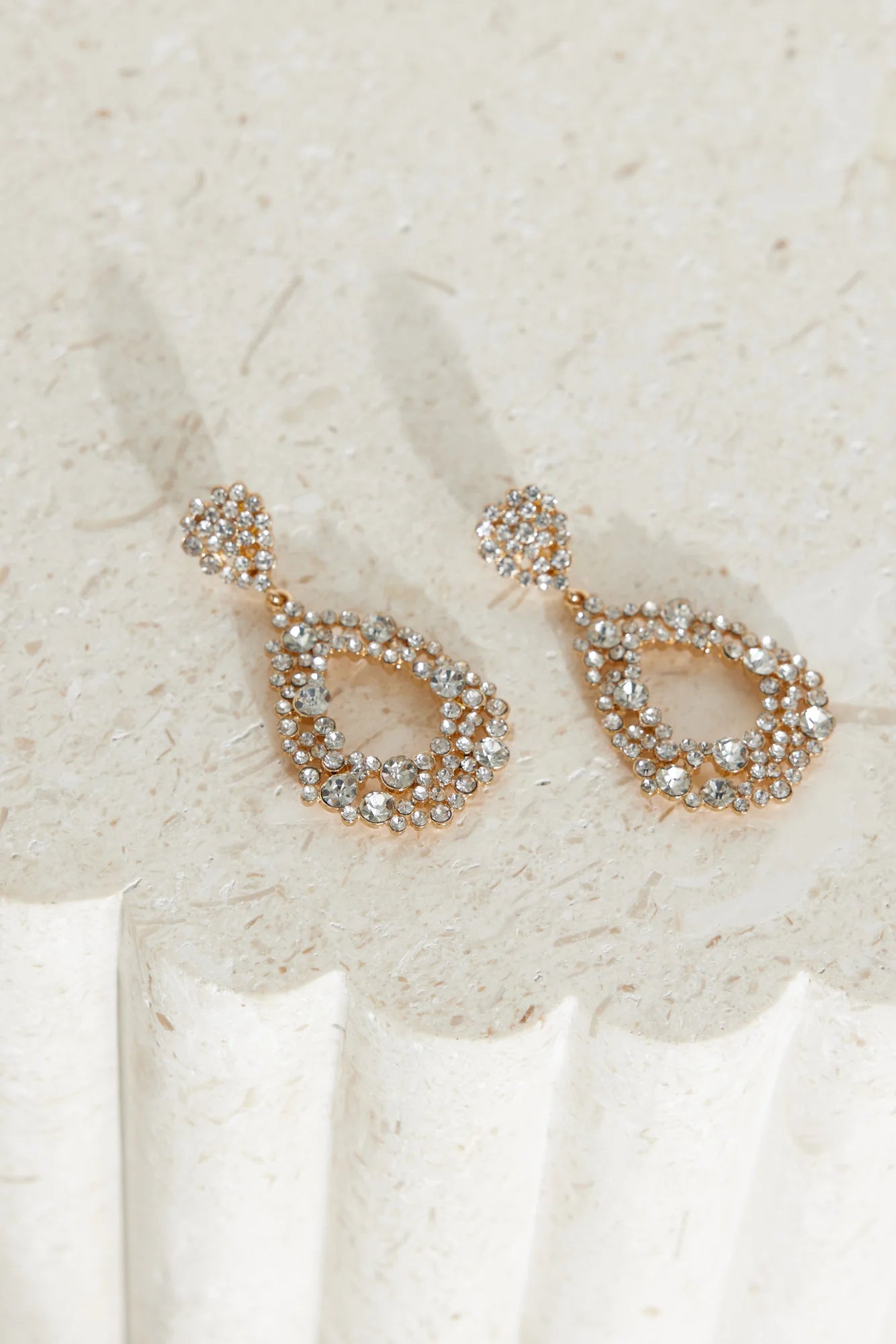 You're going to love these, girl. The Bling Events Dangle Earrings feature a gold finish that is sprinkled with diamantes. Style with your fancy 'fit.