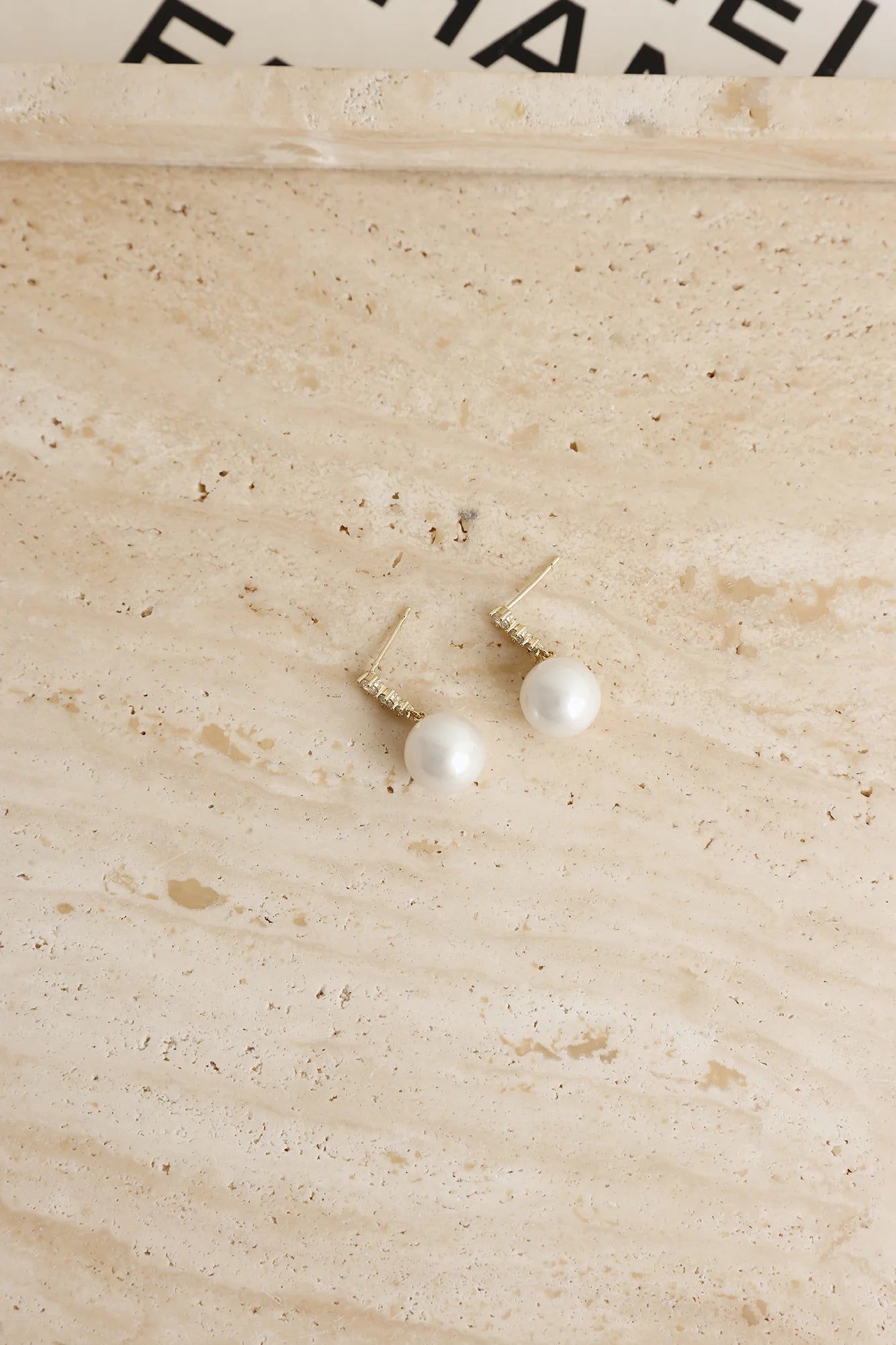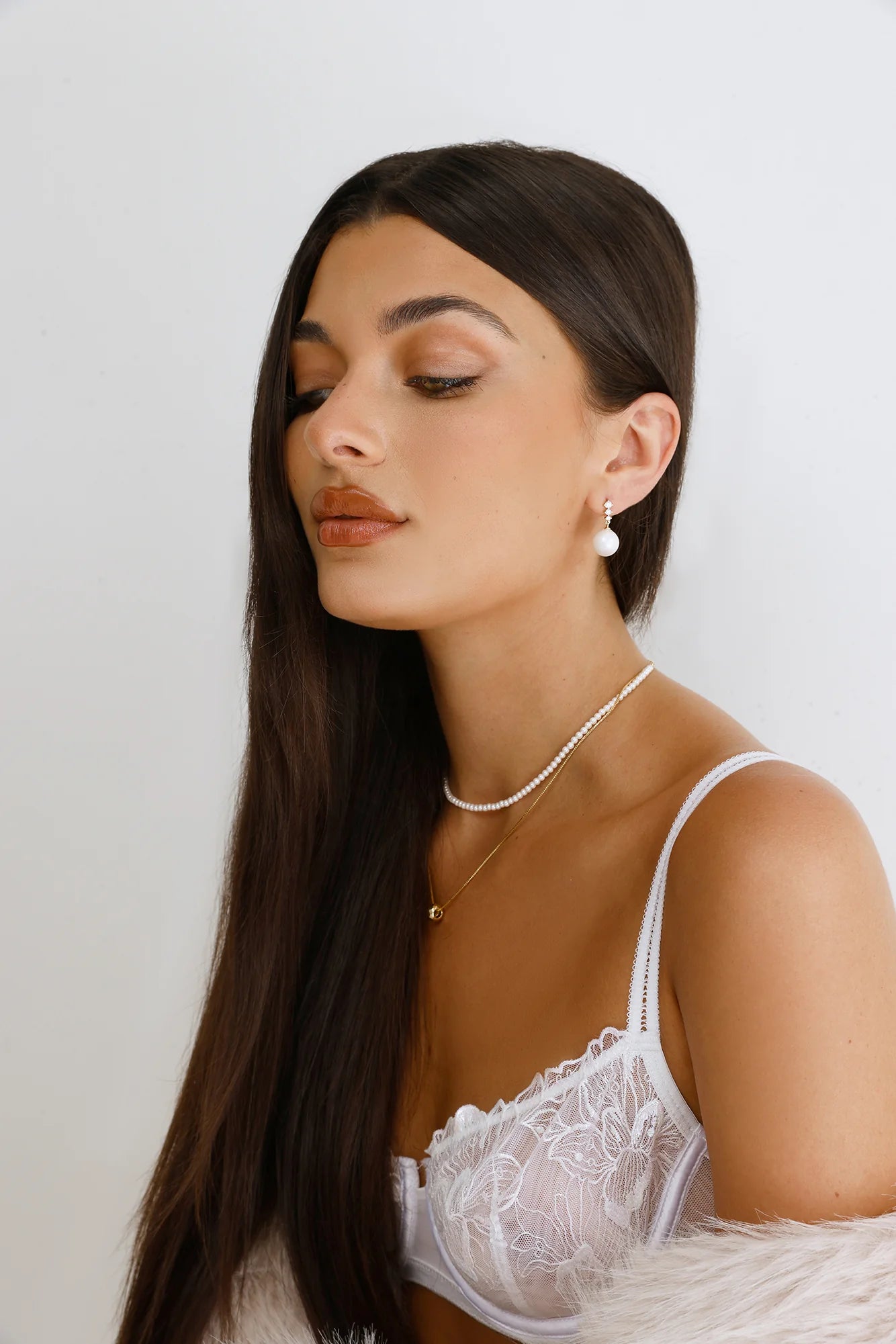 Add a touch of glam with the Dazzle Me Earrings. Featuring gold-tone metal, sparkling diamante details, and a delicate pearl drop, these earrings bring effortless elegance and shine to any outfit.