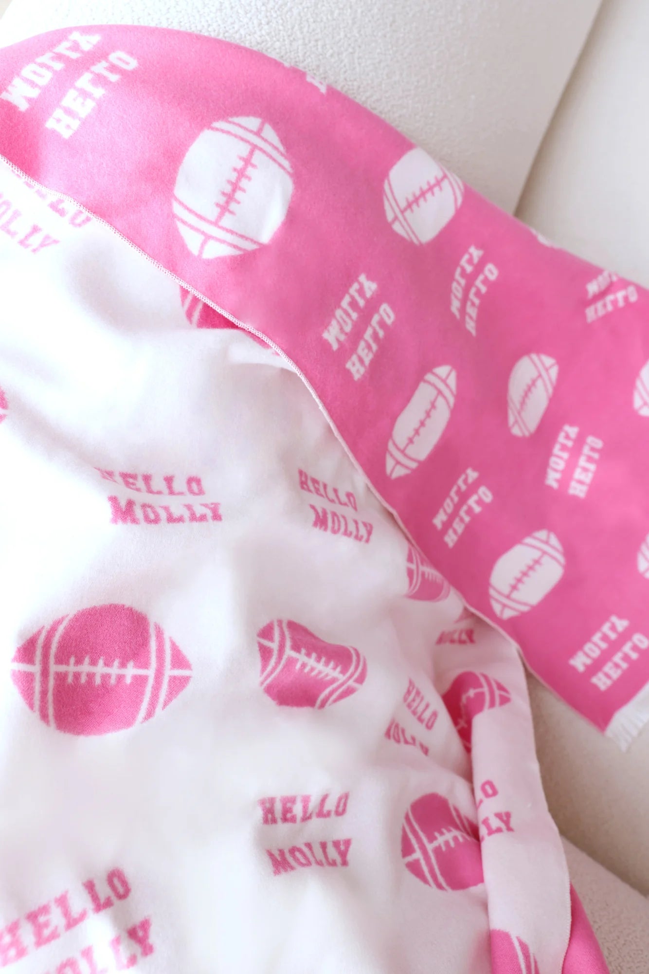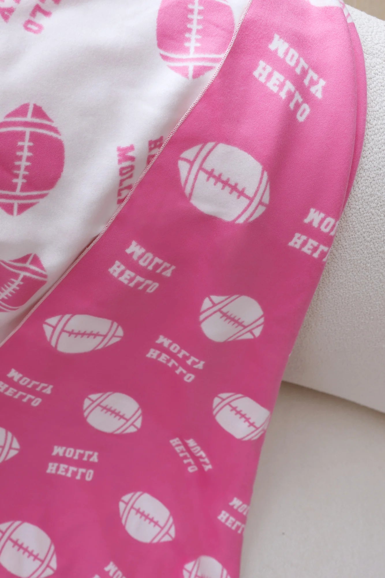 Get game-day ready with the Football Print Scarf! With its football design and double-sided pink/white pattern, this soft scarf is perfect for staying stylish and cozy during Super Bowl season. Cheer on your team in ultimate comfort!
