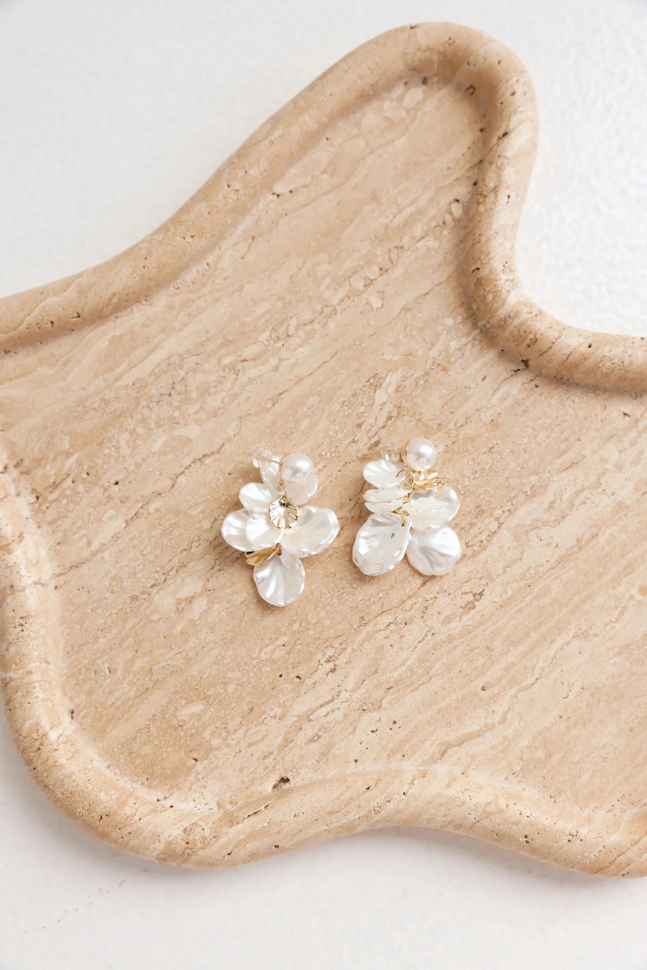Elevate your look with the Purely Accessorised Earrings. Featuring gold-tone metal with faux pearl petal accents and a delicate dangle design, these earrings bring a touch of elegance and femininity to any outfit—perfect for both everyday wear and special occasions.