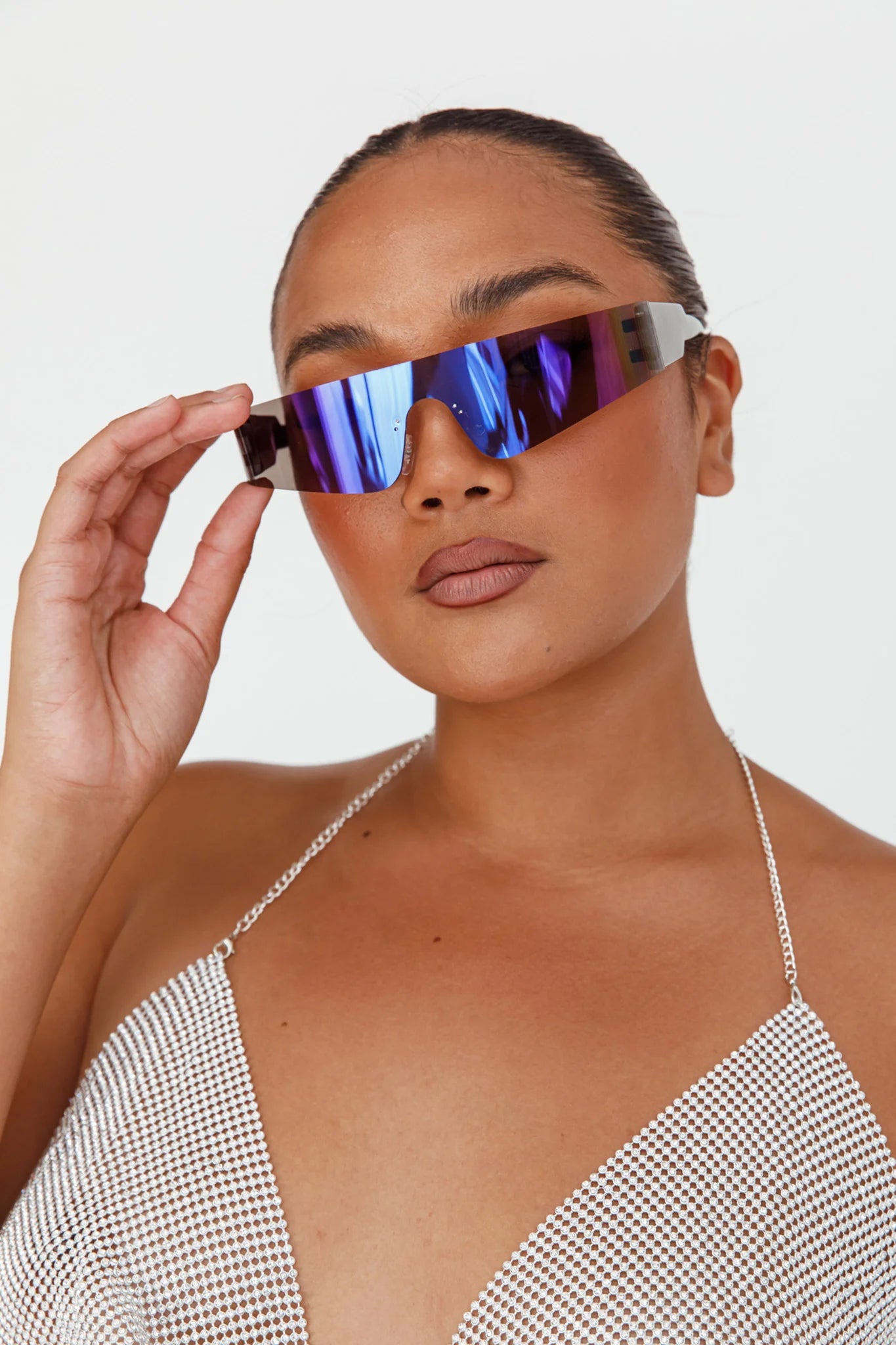 You're a style queen in our futuristic Marty Sunglasses. Featuring purple-tinted lenses that wrap around the face. You'll be the center of the spotlight!